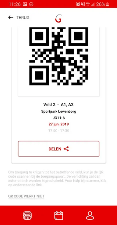 By scanning the QR code within the app at the entrance to the sports park, the lighting is switched on on the field where the training or competition is reserved.