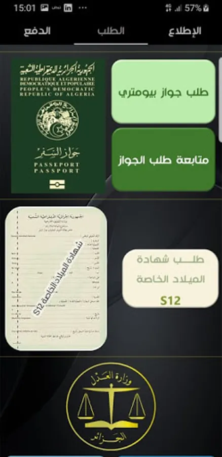 القسم الثالث: الإطلاع ، يحتوي على جميع الخدمات التي لها علاقة بالاطلاعات والكشوفات