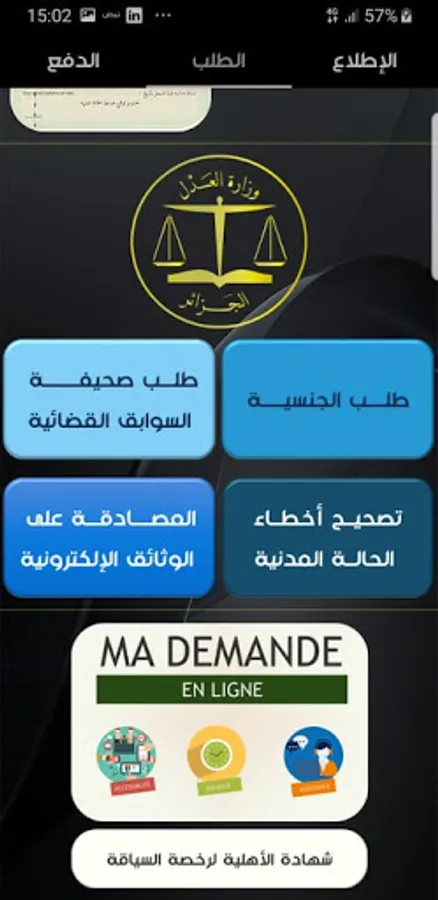 القسم الثاني: الطلب ، يحتوي على جميع الخدمات التي لها علاقة بالطلبات الإلكترونية عن بعد