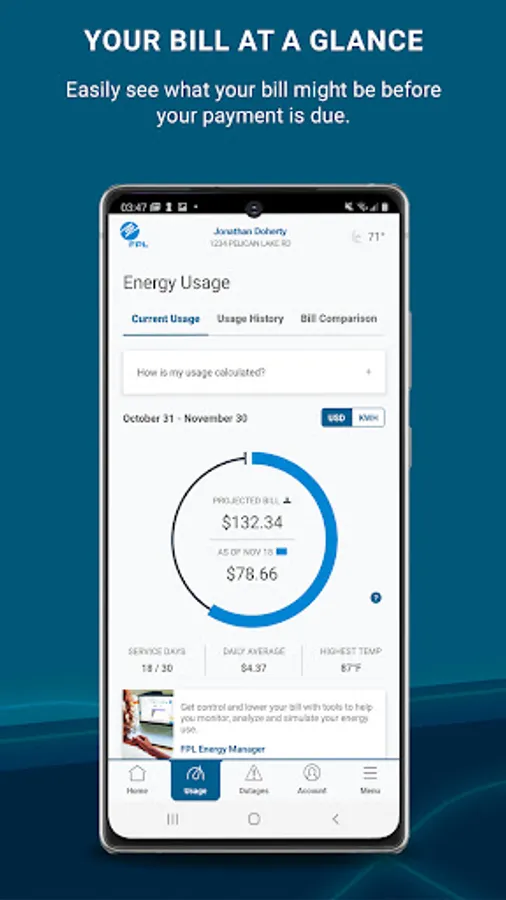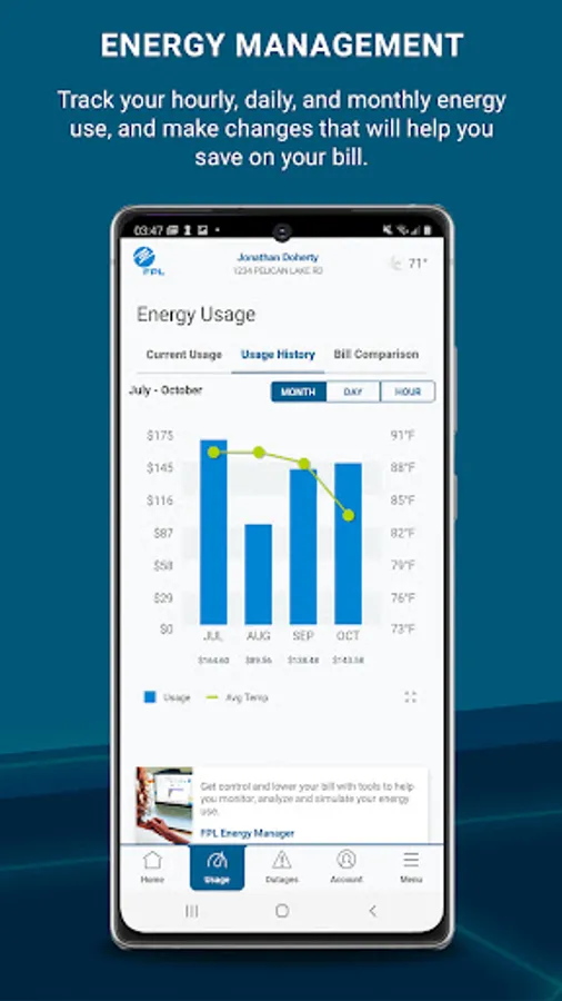 -View your daily energy cost average and quickly see how your bill compares to the previous month