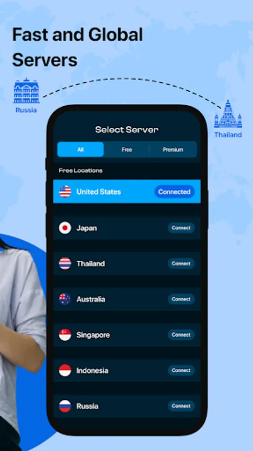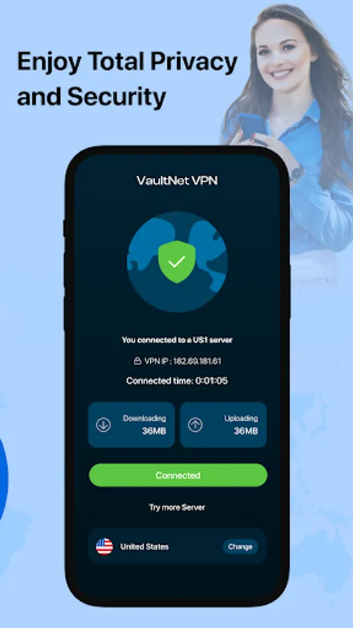 6. One-Tap Connect: A simplified interface ensures an effortless VPN experience. Just tap and connect!