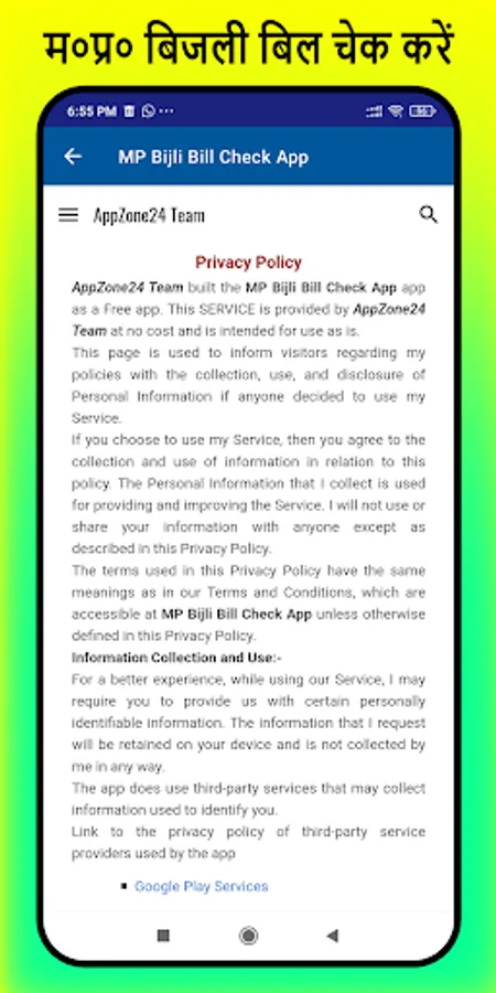 This App contains third party web links of some official websites of Madhya Pradesh Poorv Kshetra Vidyut Vitaran where you can check your home or office electricity bill online in your mobile. All the web links available in this app are belongs to their respective owners only.