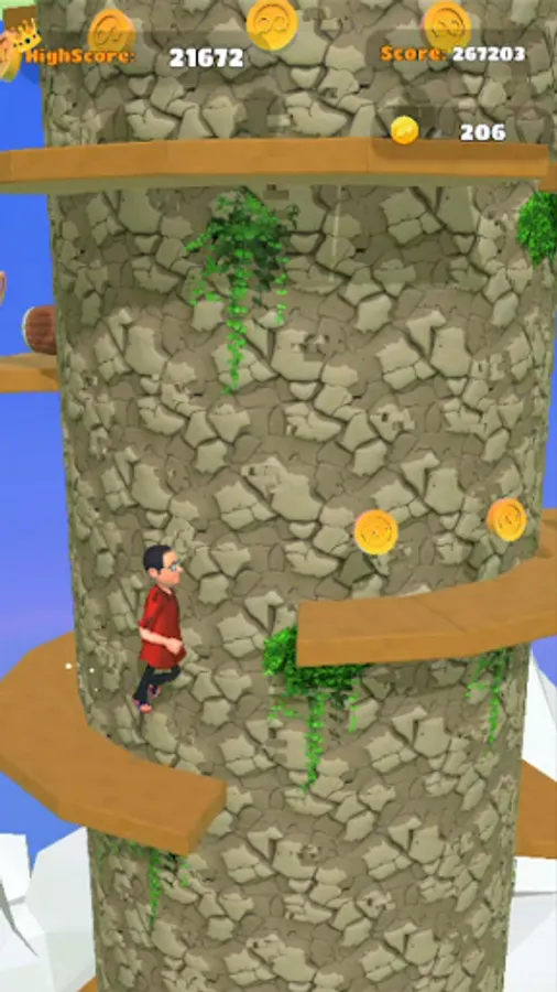 The main objective of the game is to ascend the rotating tower by jumping from one platform to another. These platforms are strategically placed at varying distances, challenging the player's timing and precision. To navigate through the tower, players must tap the screen to make Bhide jump. By double-tapping, Bhide can achieve higher jumps, allowing you to reach platforms that are farther apart.