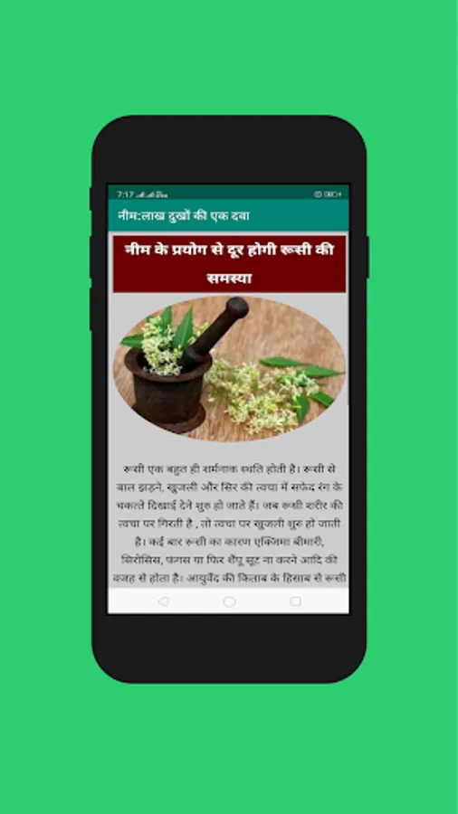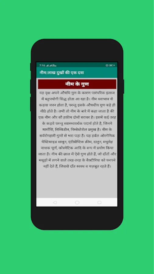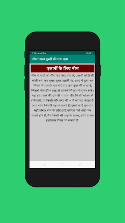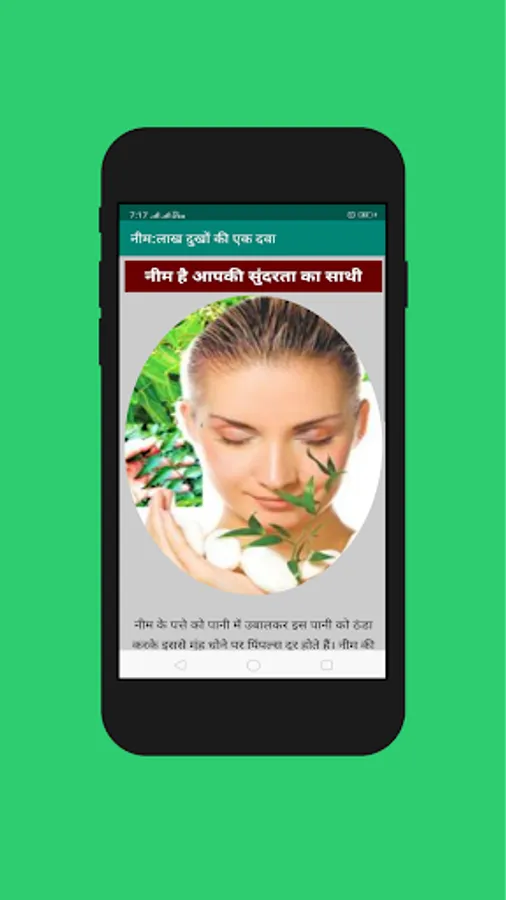 App contains easy home remedies made of leaves, branches and other parts of neem tree.