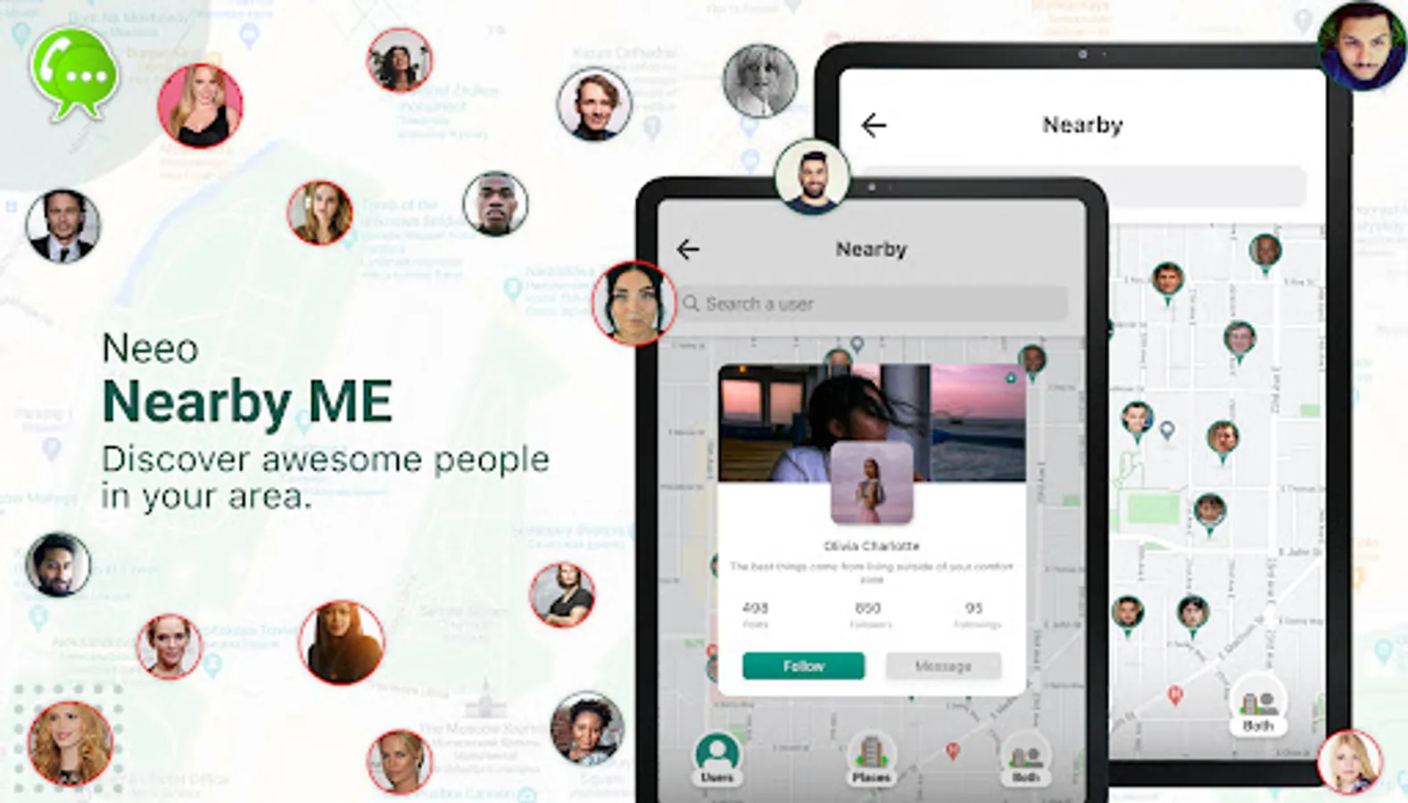With Neeo nearby feature find the awesome people in your area. The easiest way to find and make new friends in your area with just a single click. It can display users near you on the map. Choose the one you like, tap on the profile icon to learn more, and start a conversation.