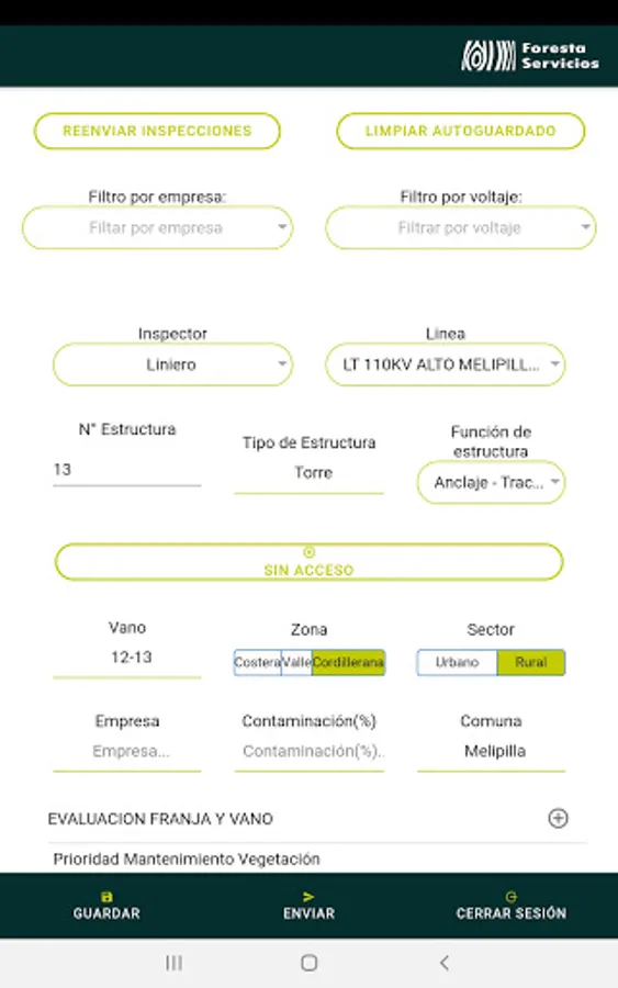 Application for pedestrian inspections of vegetation, with digitized form, georeference and photographs of evidence.
