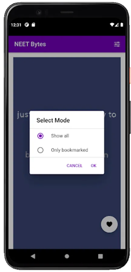 Select mode as "Only Bookmarked" to practice those concepts you bookmarked.
