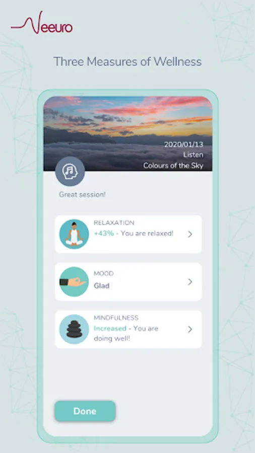 By tracking your relaxation, mood and mindfulness levels, Galini helps you understand your progress and optimize your training.