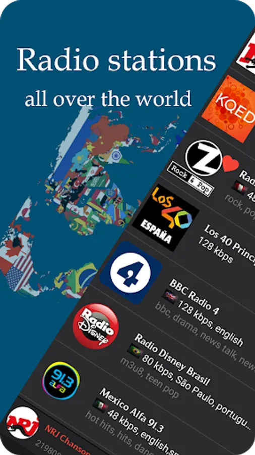 The application's catalog has more than 50,000 music channels belonging to the following genres: