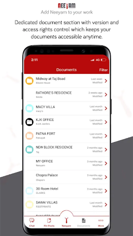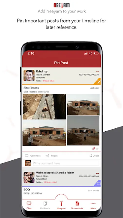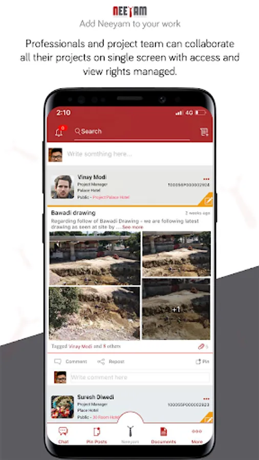 Work with Neeyam – Through this app, a user can store data and rapidly share it either selectively or with all concerned users of the project to facilitate their involvement. A user can create a post as a notice, agenda or an issue and tag other users in that post for uninterrupted workflow. For better coordination, even a minor amendment by the user reflects on the timeline of other users.