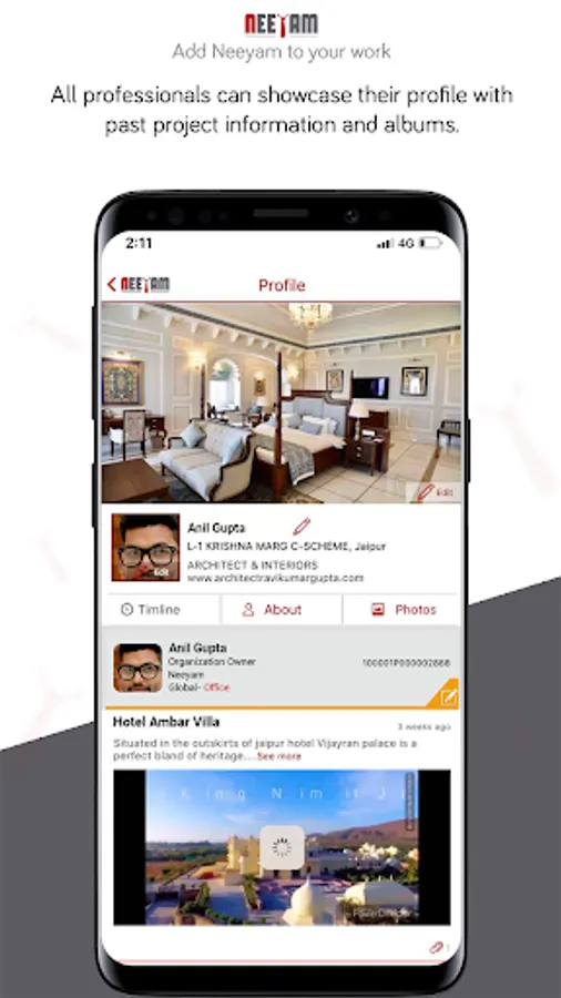 Neeyam is an interactive mobile and desktop app that synergises the clients, professional service providers and vendors’ collaboration through seamless sharing of projects, documents, images and drawings. It systematizes the project workflow and brings about transparency. It solves the problem of oversight, lack of coordination, project monitoring and misinterpretation that lead to cost and time overruns.