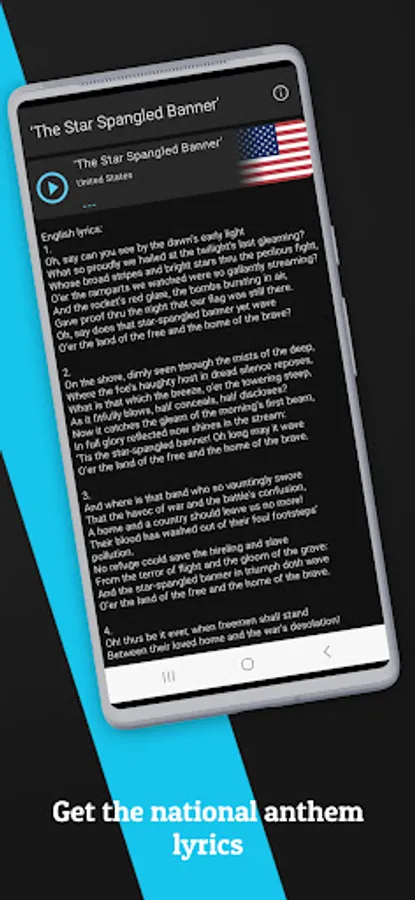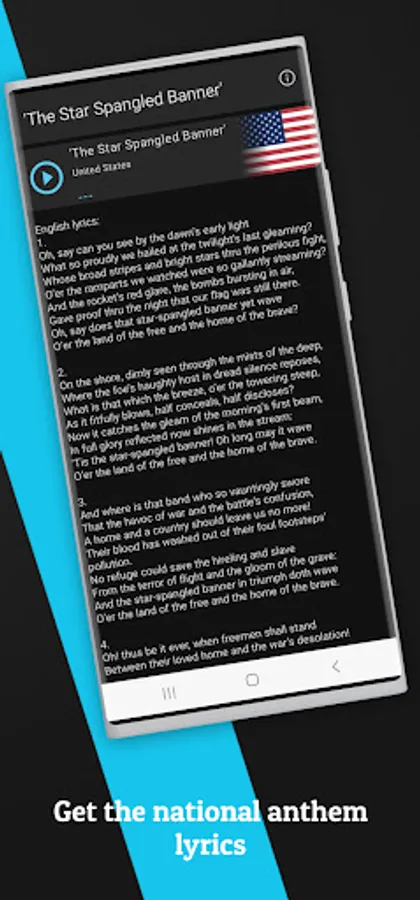 Would you like to download The Star Spangled Banner ringtone for Android? In National Anthem Ringtone Free app for Android you will find the US national anthem ringtone and national anthem ringtones for all the countries in the world!