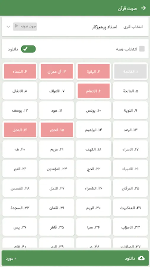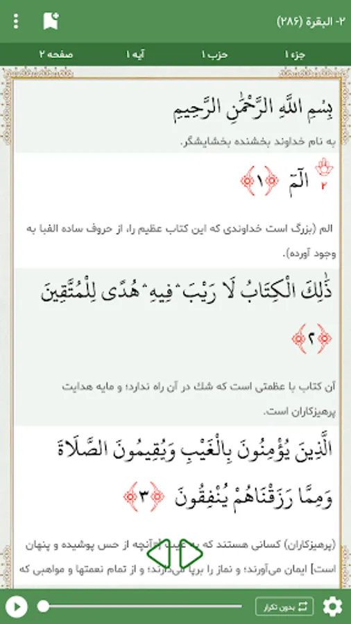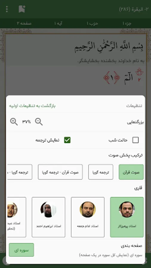 - Fully intelligent audio Qur'an with 32 recitation, educational and research courses from famous reciters of Iran and the world