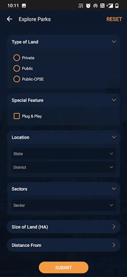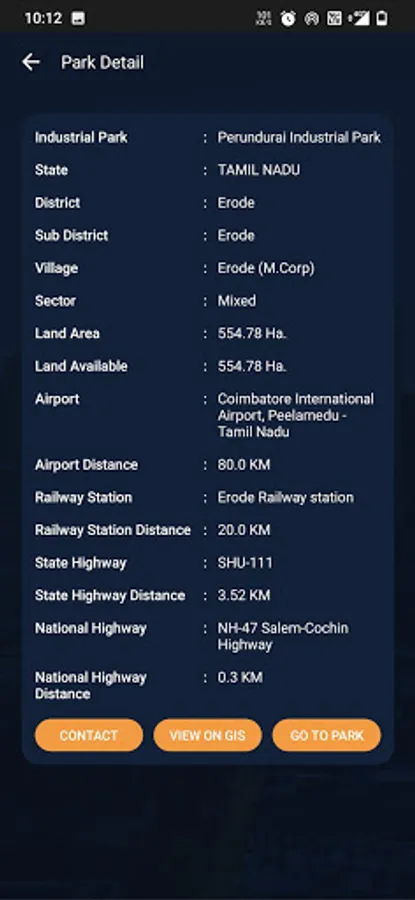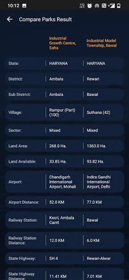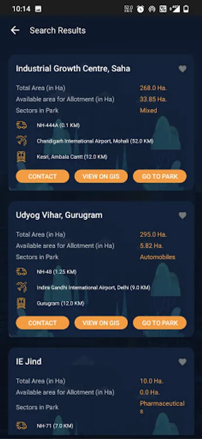 • Explore Parks – Industrial Park results showing information of industrial parks based on some parameters.