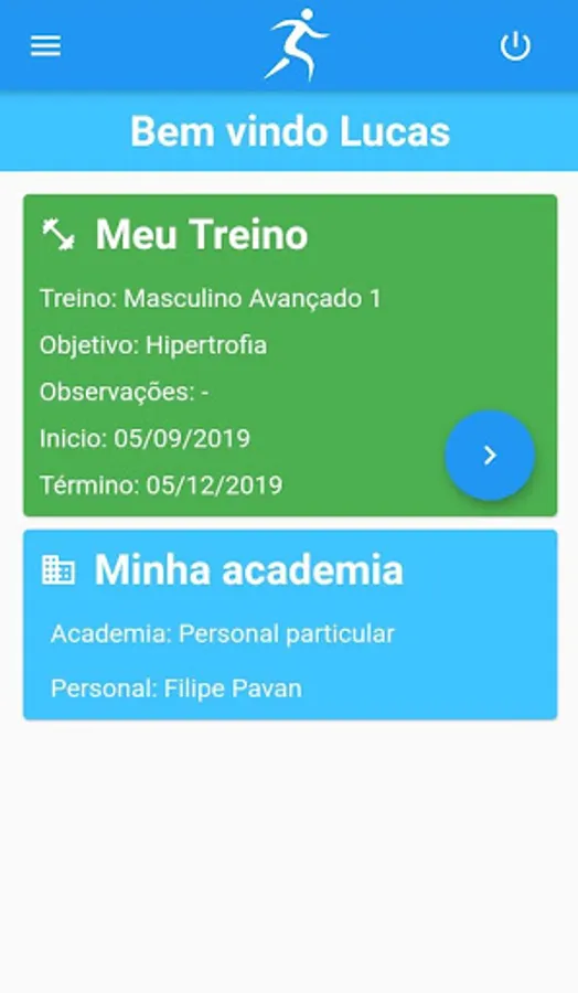 Application for students to be able to follow their training as their teacher guides, containing their complete training and videos of how to perform the exercises.