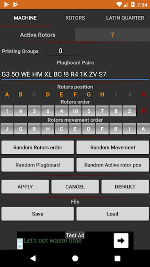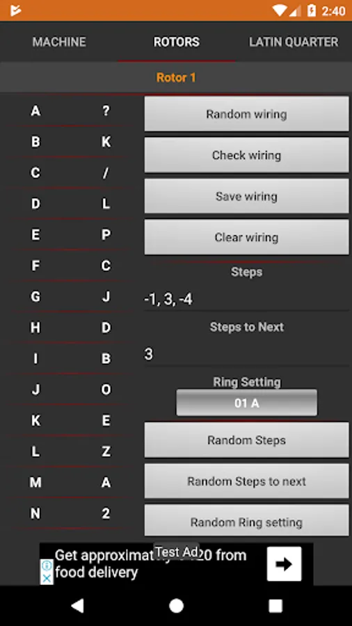 - Set Wiring table for all rotors, entry wheel and reflector