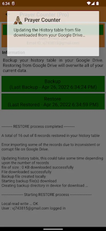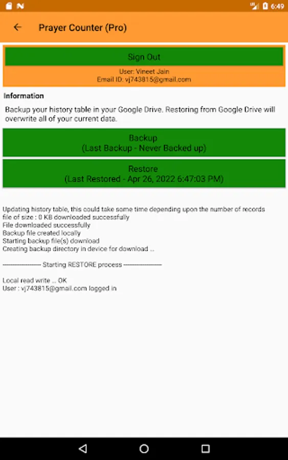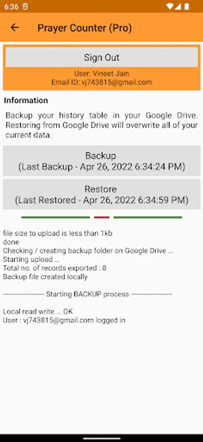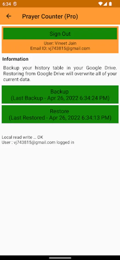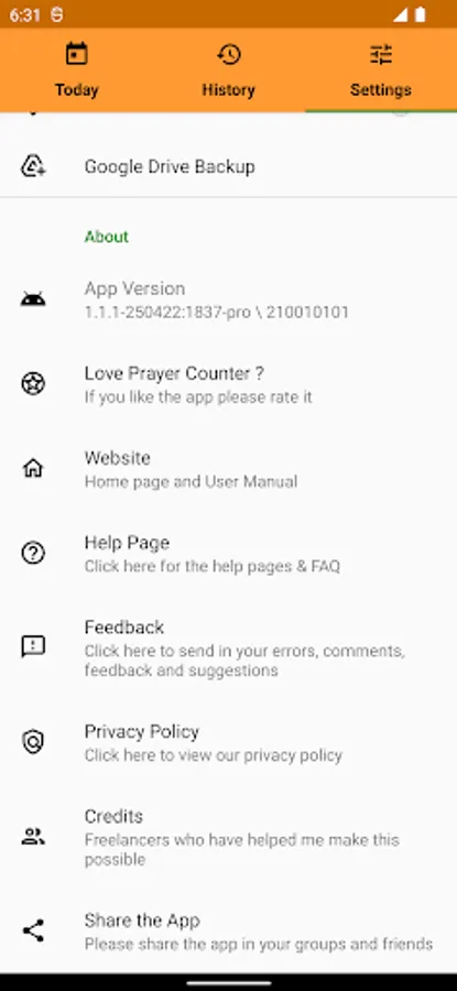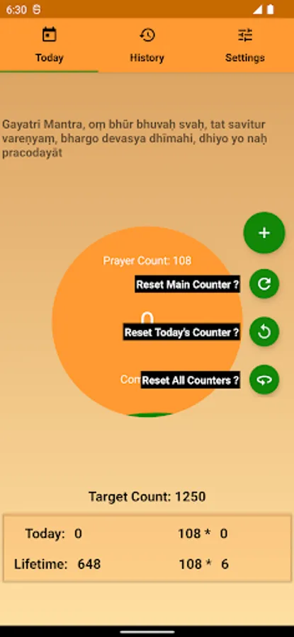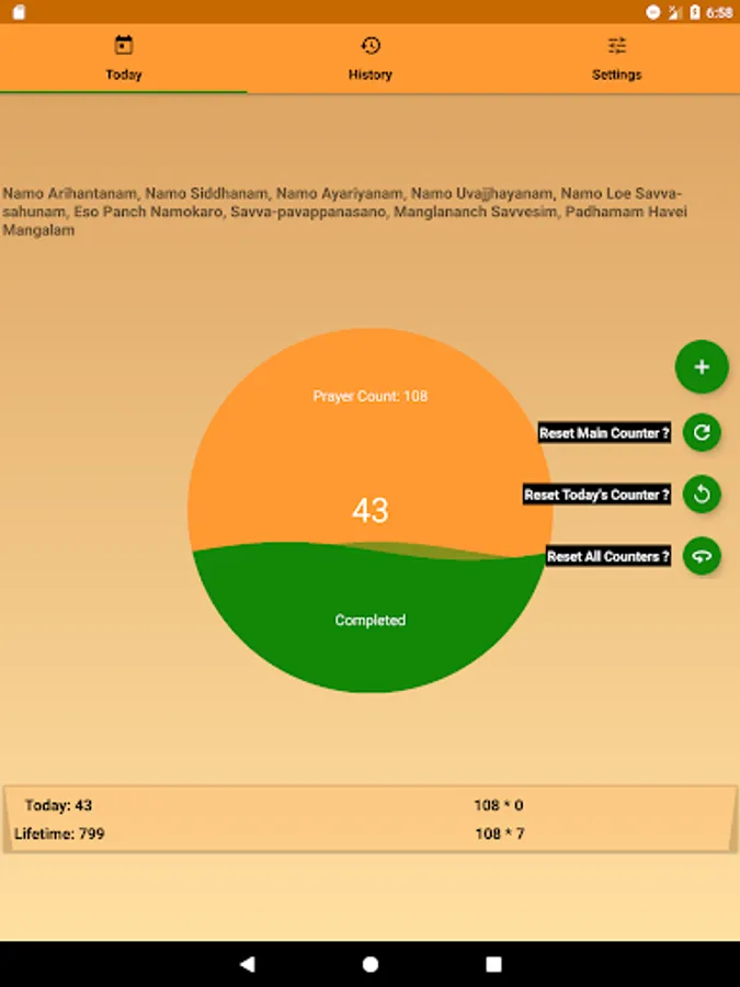 - The history page will list out ones past japas letting one know as to when they have completed them with start/end date/time