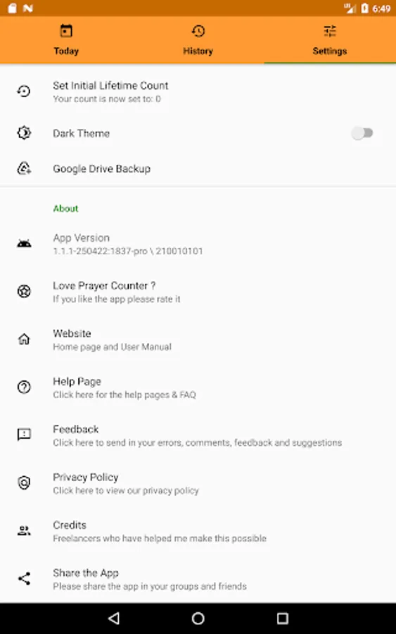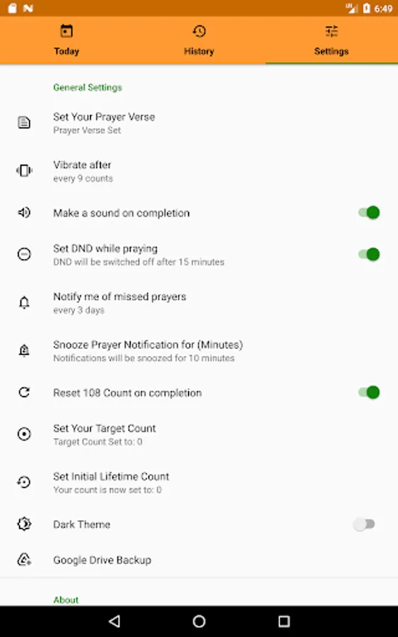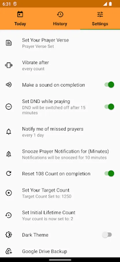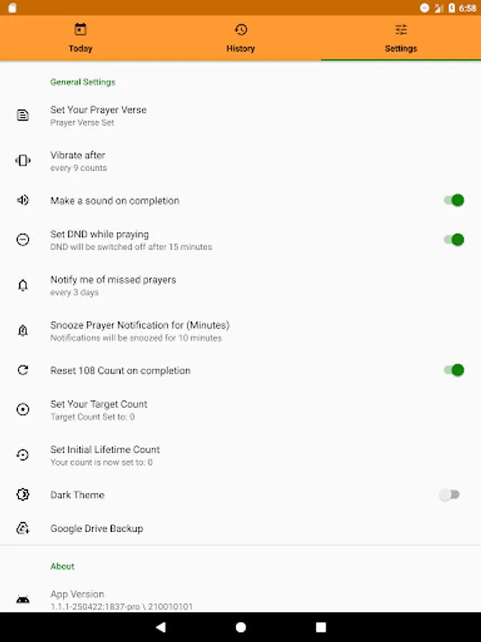 - Provides haptic feedback or vibrations for every 1, 9, 21 counts so we need not look at the app when doing japas (9, 21 are for the shorter version of the japas)