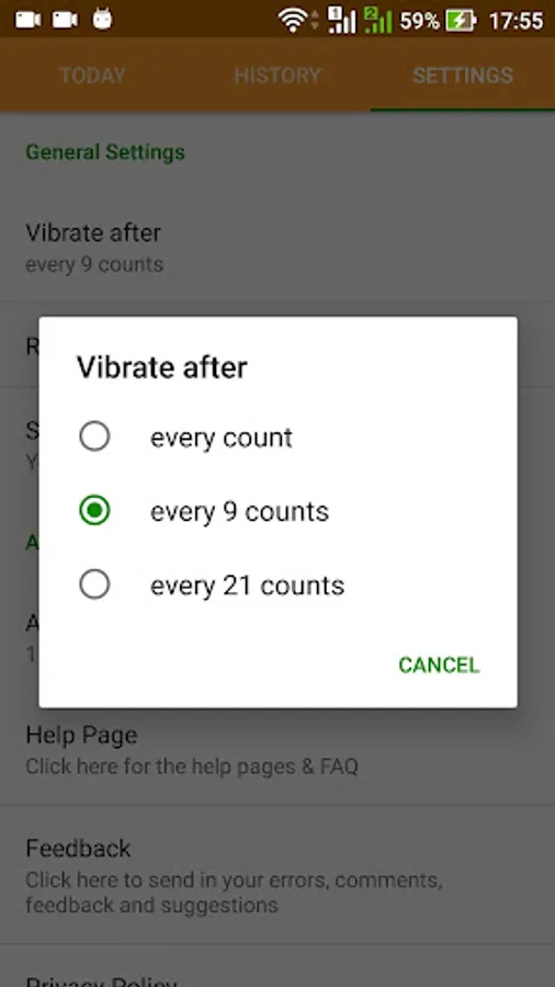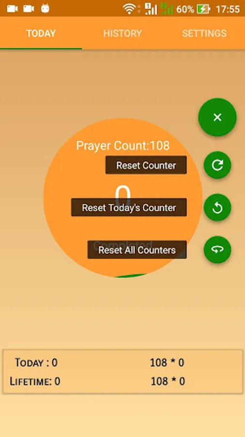 - Reset all counters option (third option in the menu) will reset the centre button to 0 and Today's count to 0