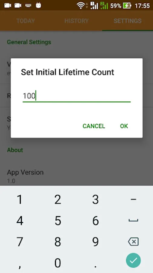 - We can set a initial lifetime count in the settings page which can be any count between 0 and 99,999.