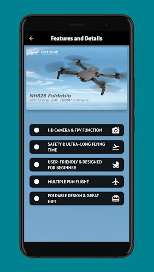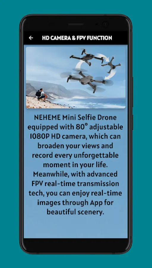 neheme nh525 guide equipped with 80° adjustable 1080P HD camera, which can broaden your views and record every unforgettable moment in your life. Meanwhile, with advanced FPV real-time transmission tech, you can enjoy real-time images through App for beautiful scenery.