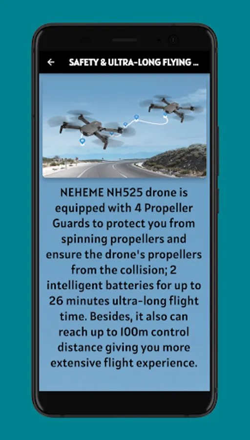 neheme nh525 guide is equipped with 4 Propeller Guards to protect you from spinning propellers and ensure the drone's propellers from the collision; 2 intelligent batteries for up to 26 minutes ultra-long flight time. Besides, it also can reach up to 100m control distance giving you more extensive flight experience.