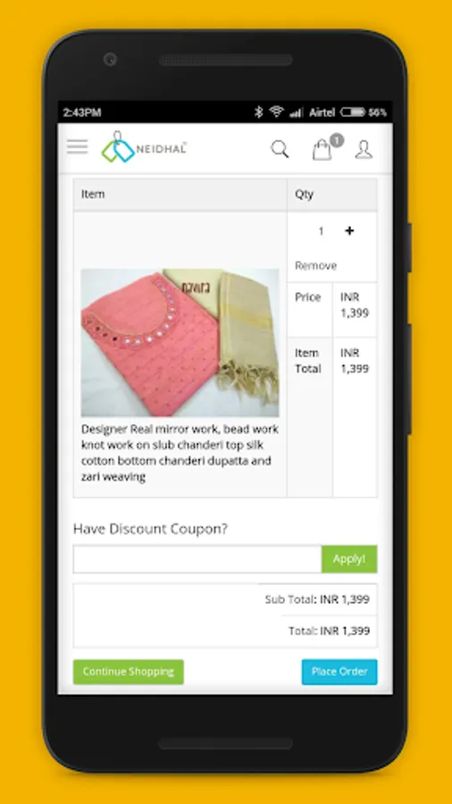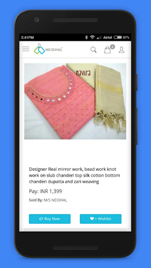 Neidhal brings you an Exclusive collection of Unstitched Salwar Suits at a Very Affordable Price. Sourced directly from Manufacturers across india, we assure you that, we have the best of the materials across various ranges. From the Chanderi's of Madhya Pradesh, Gawal's of Andhra Pradesh, Hand Block Cotton's from Jaipur, Bhagalpuri Silk's from Bihar, Bhandini's from Rajasthan, The Aaari's, Appliq's, Kalamkari's, Batik's, Oragnic's we have it all.