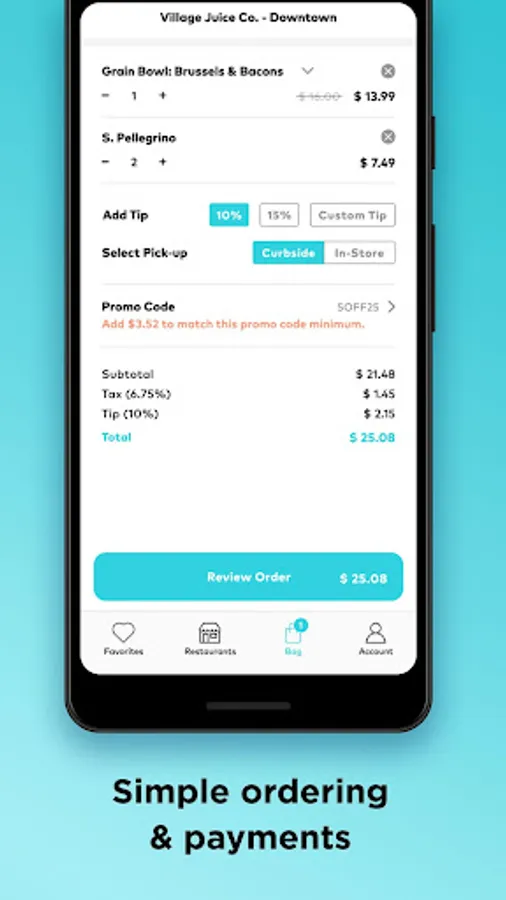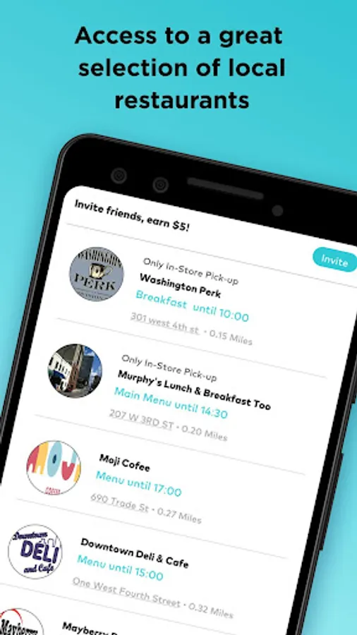 Zero-fee mobile ordering and curbside service from local restaurants.