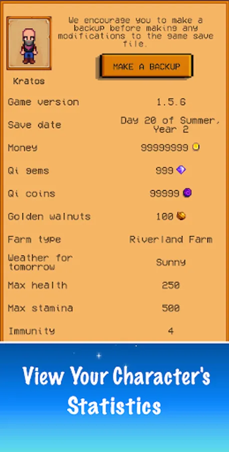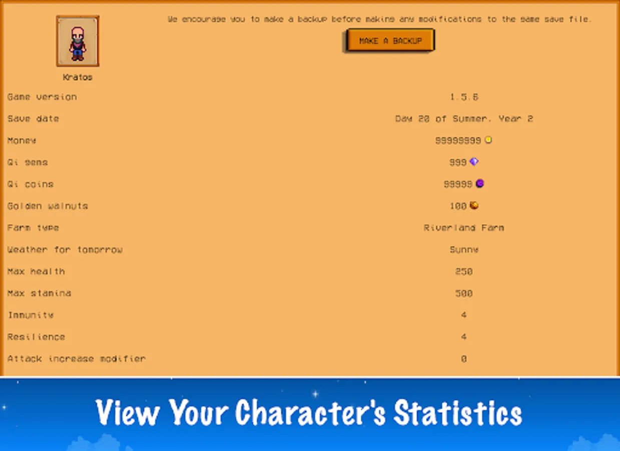 This is an application for editing save files for the game Stardew Valley, including the following features (but not limited to):