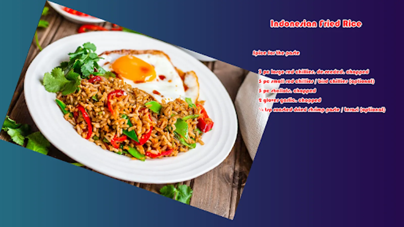 One of the amazing recipes my dad taught me to cook, Nasi Goreng - or Indonesian Fried Rice - is a dish he cooked many times as I was growing up. Inspired by the years he spent in Singapore, he really picked up a taste for Malaysian, Indonesian and Singaporean flavours.