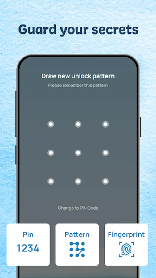 Set a password for the Daily Journal - Diary with Lock app to prevent others from reading your secrets; unlock with a fingerprint, an iris, a pattern, etc.