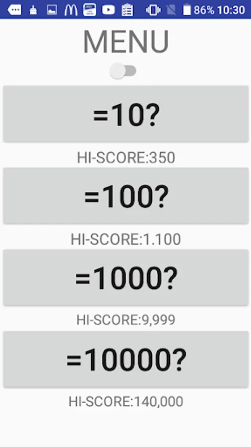 App title is "= 100?", But "= 10?" "= 1000?", "= 10000?" Can you so well, you can challenge from a simple place.