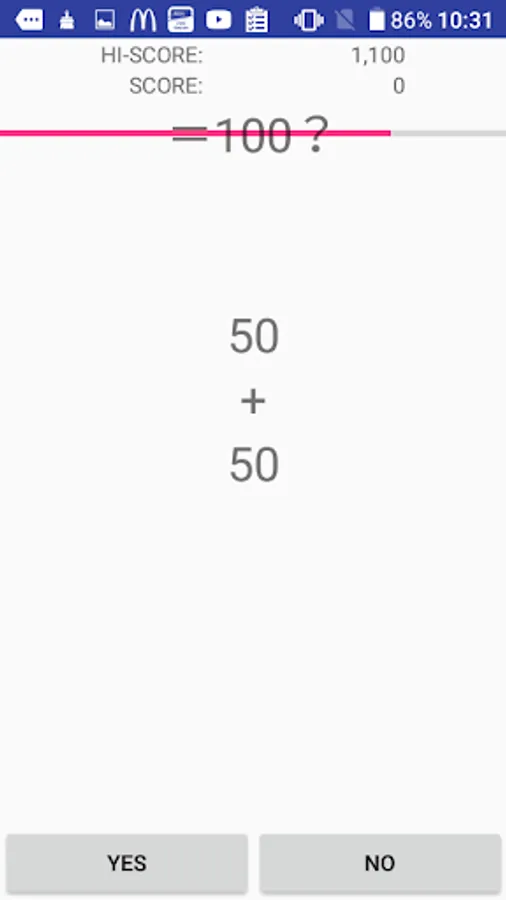 The YES If the addition of the result is 100, tap the 100 unless NO!