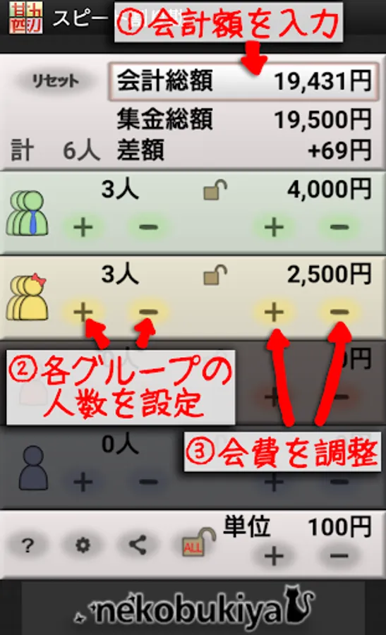 Convenient item for drinking party! ! "Speech split insult" troublesome split ins calculations can be calculated easily and easily with this application in this app ☆