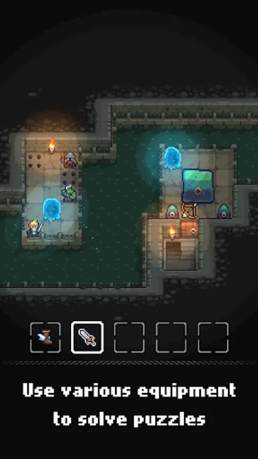 Dungeon and Puzzles is a game that challenges players' 2D spatial perception and logical thinking. A player can use a sword to attack monsters, or a bow and an arrow to destroy enemies from afar. Pushing the obstacles back with a shield and pulling the monsters with a pair of special gloves.