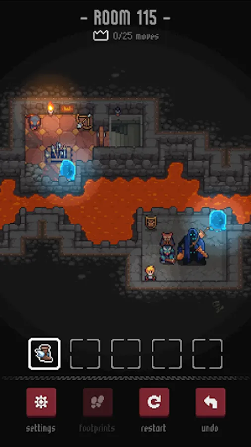 To beat the puzzles with fewer moves, achieving advanced goals, players will have to try different tactics and move combinations to find an optimized solution for the room. Sometimes a player would need to put the old solution aside and take on a new perspective towards the problem, reexamine and rethink before making a move.