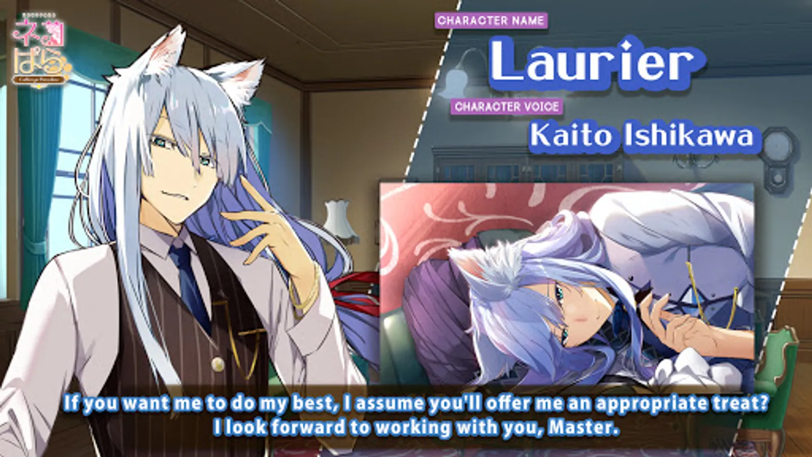 Laurier appears to be a lazy catboy that takes naps whenever he can. When it comes to work, however, he always does his job perfectly. Due to his friendliness and handsome appearance, he is very popular with female customers. He is actually a talented catboy who can achieve anything if he sets his heart to it.