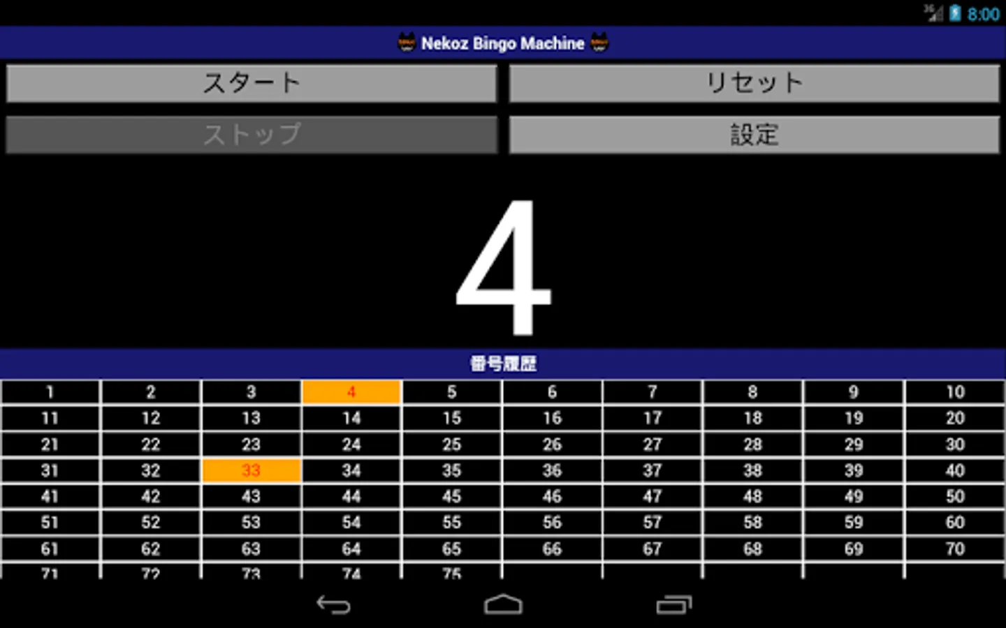 Bingo when used in combination with " Nekoz Bingo Card " You can enjoy the bingo game without preparing the card and bingo machine in advance.