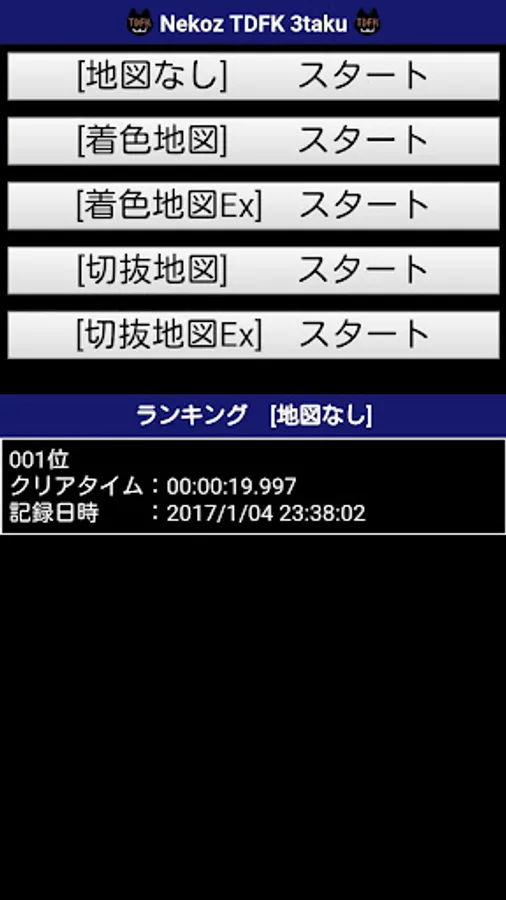 クイズのモードは5つ。(地図なし、着色地図、着色地図Ex、切抜地図、切抜地図Ex)