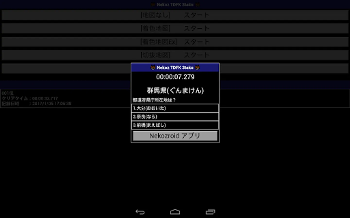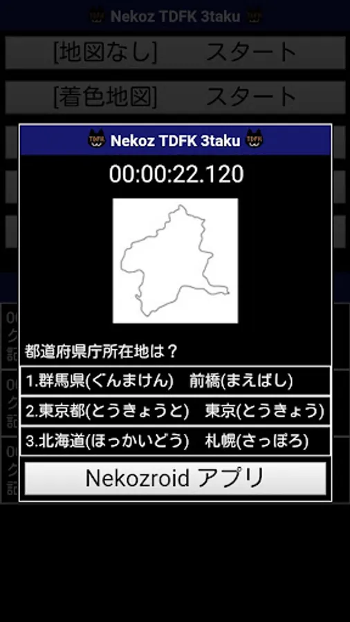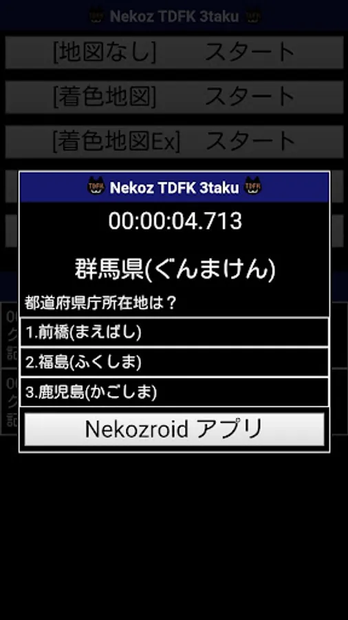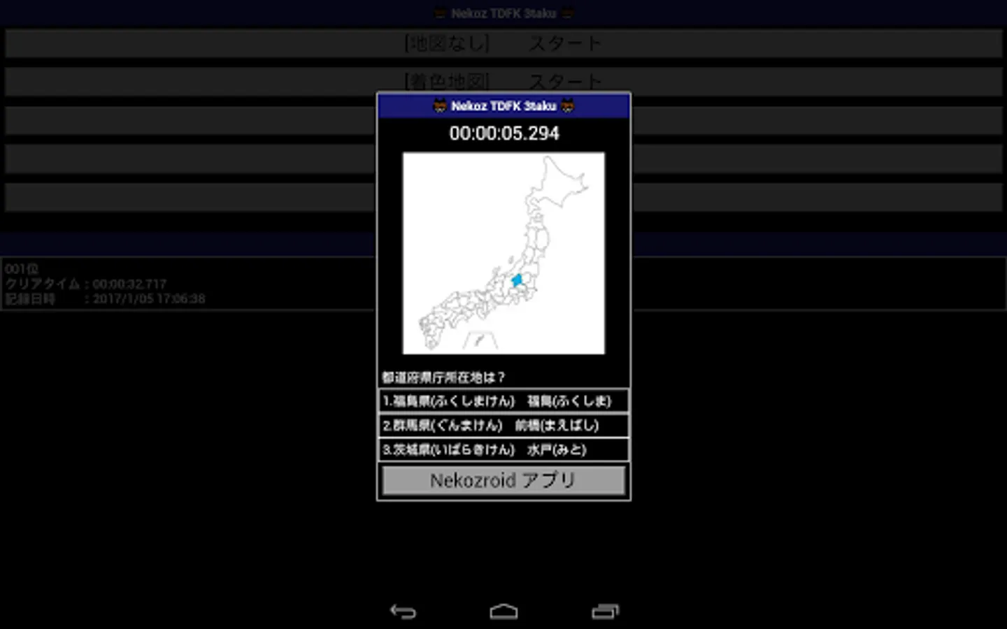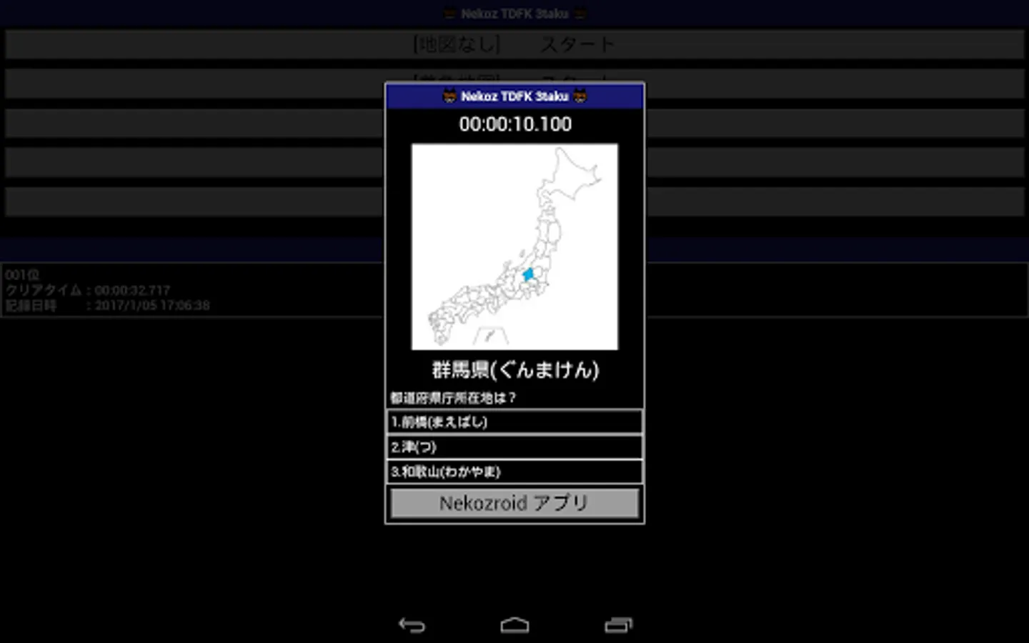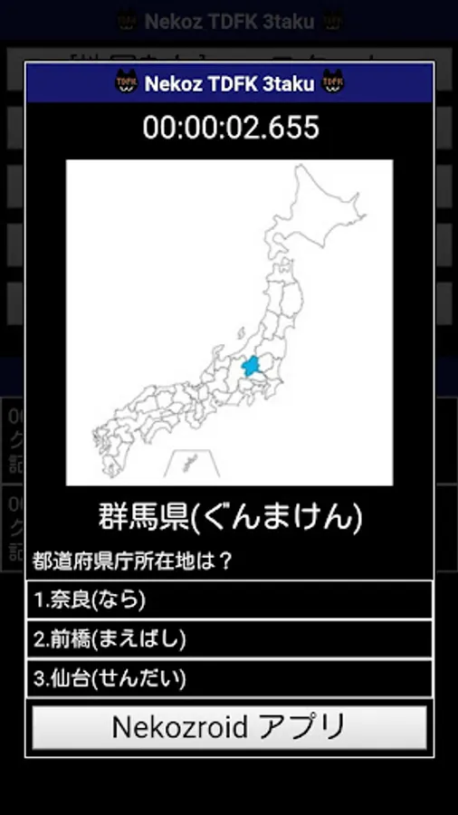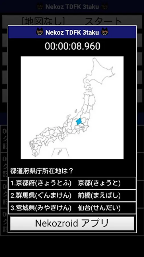 都道府県庁所在地を覚える為の3択形式クイズアプリです。