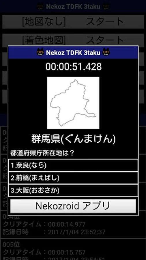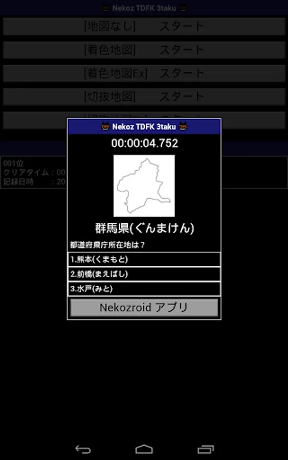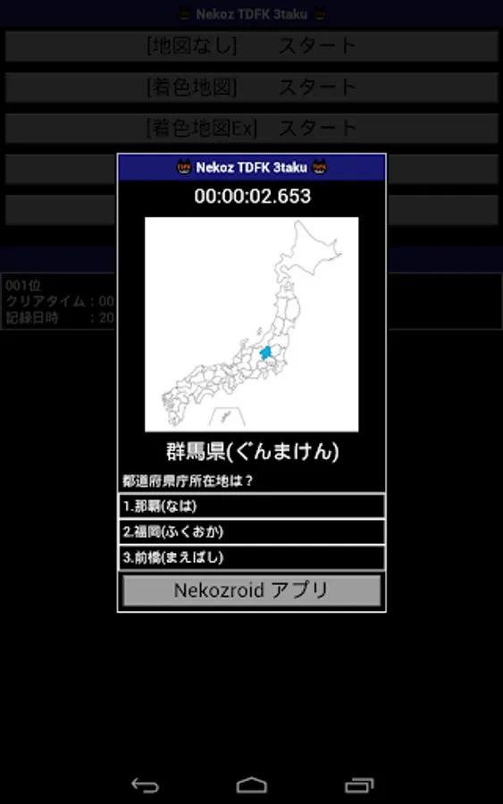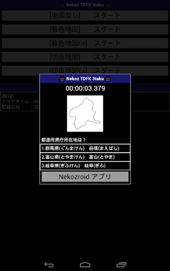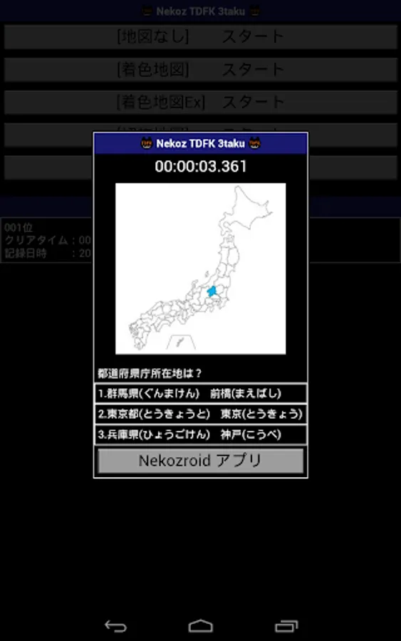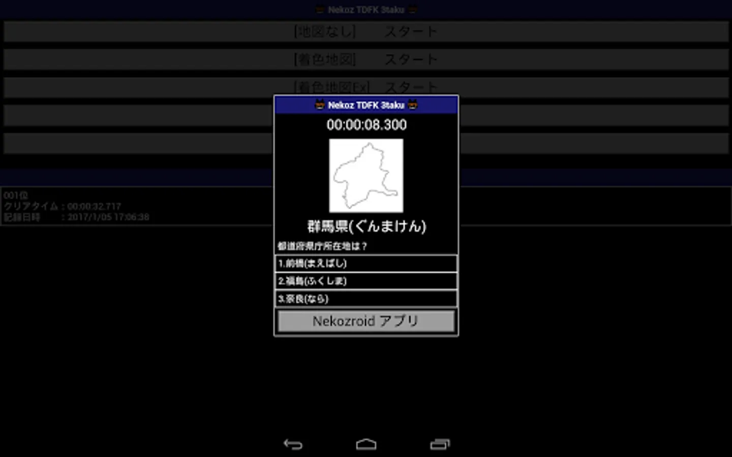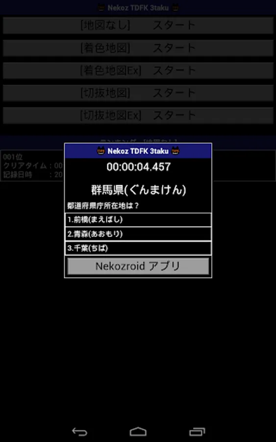 都道府県庁所在地を覚える為の3択形式クイズアプリです。