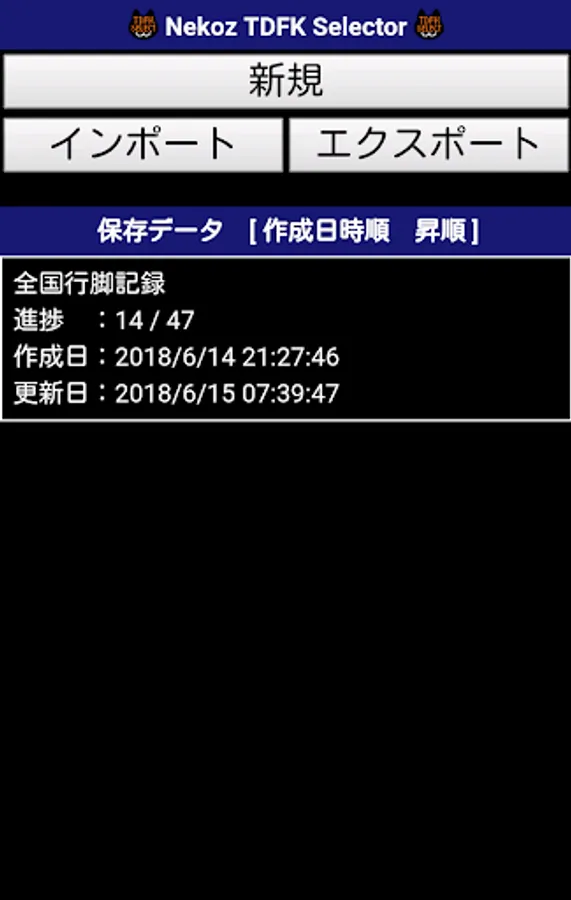 新規データを作成して、都道府県選択履歴画面を表示します。