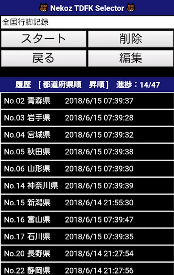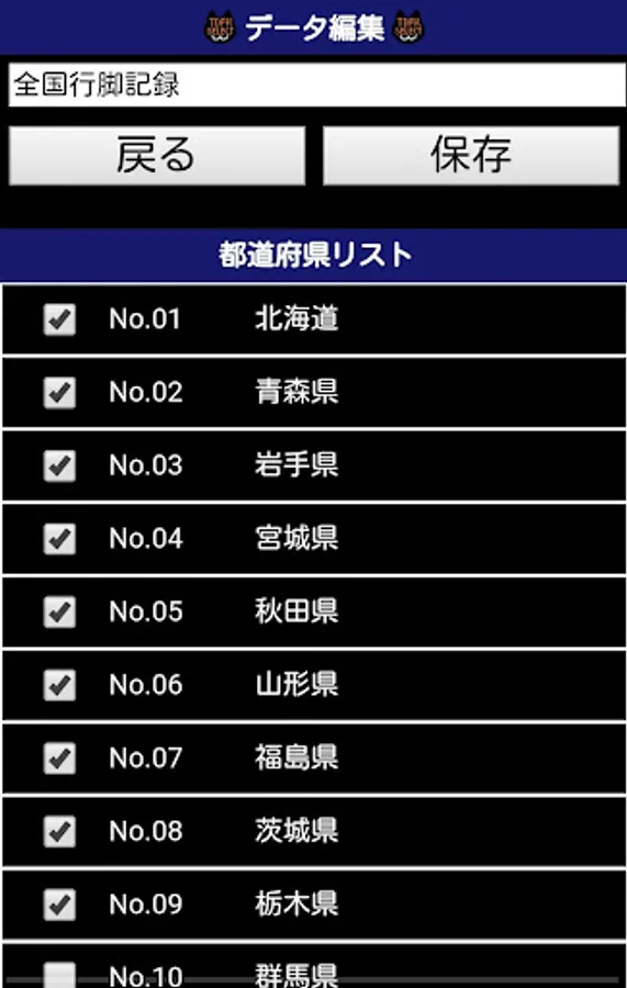 アプリ使用前に旅行済の都道府県を選択したり、間違って選択してしまった都道府県の解除を行うなどの調整が行えます。