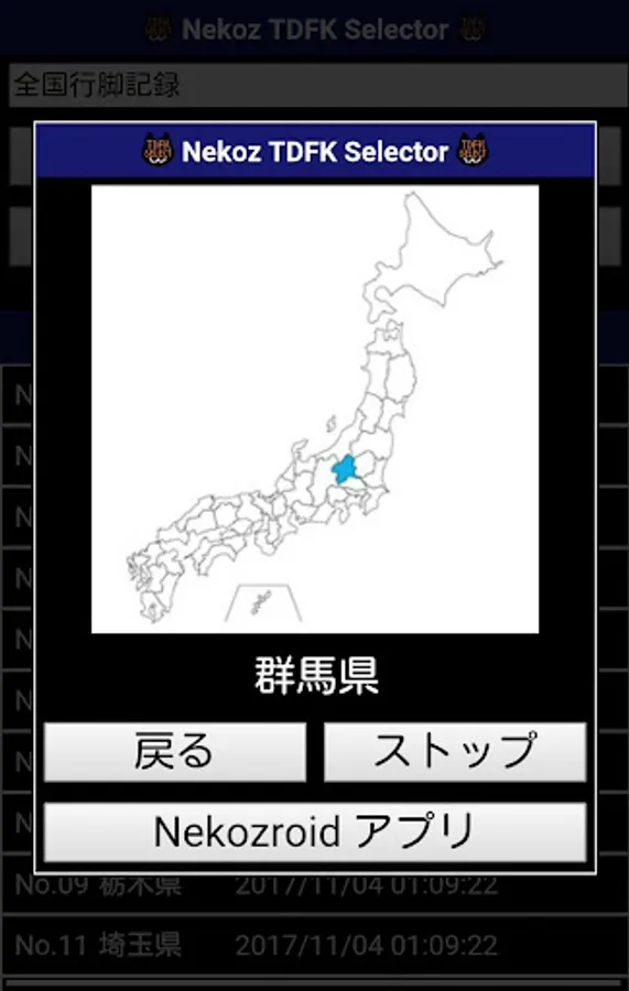 都道府県ランダム選択停止画面を表示します。