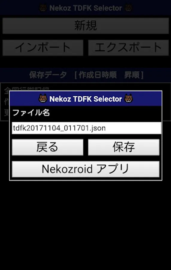 保存データの内容をJSON形式のファイルとして保存します。