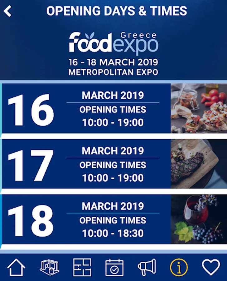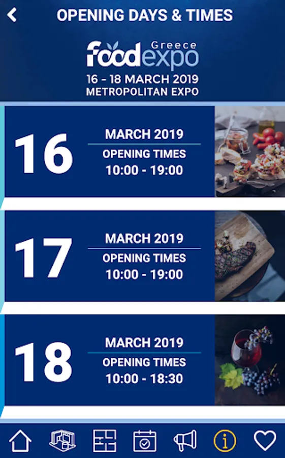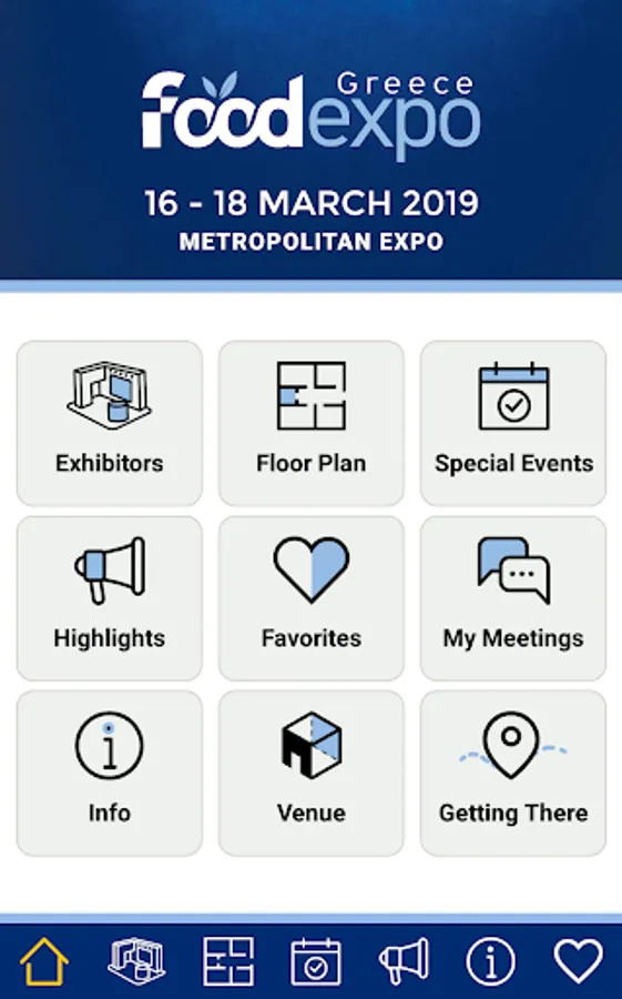 Featuring 1,300 Greek and international exhibitors and 50,000 sq.m. of exhibition space, FOOD EXPO will take place from 16 to 18 March 2019 at Metropolitan Expo, Athens - Greece. Download the Mobile Application of FOOD EXPO in order to better plan your visit to the trade show and easily access important information such as: