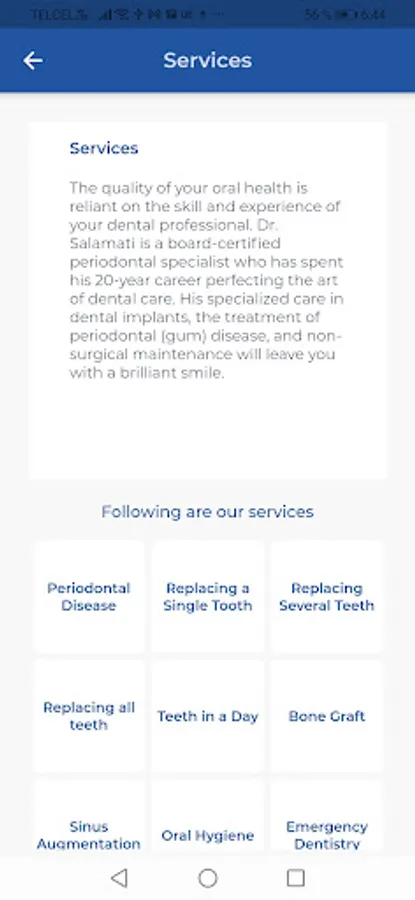 This app was made for the Managment of Afshin Salamati DDS MS. This app can Book Appointments, check information about the dental office, look for the adress of the dental office, and contact the dental office.