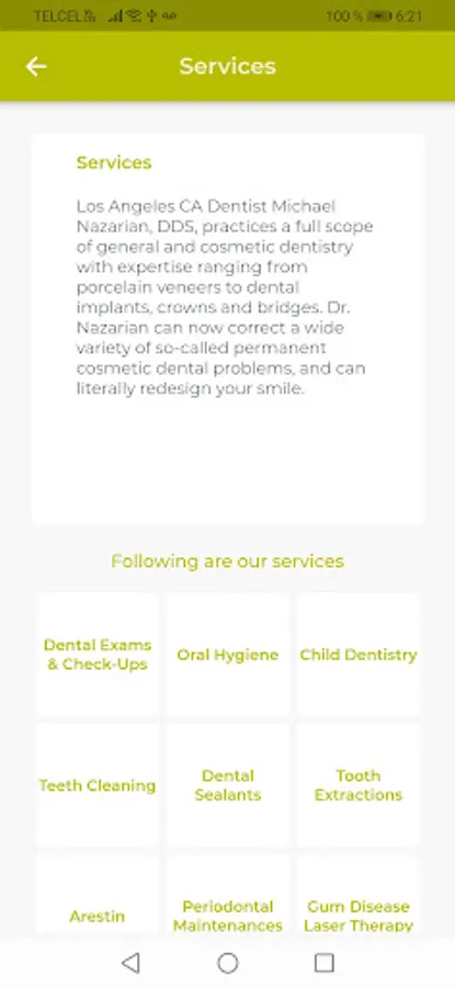 This app was made for the Managment of Michael Nazarian DDS. This app can Book Appointments, check information about the dental office, look for the adress of the dental office, and contact the dental office.