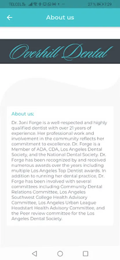 This app was made for the Managment of Overhill Dental. This app can Book Appointments, check information about the dental office, look for the adress of the dental office, and contact the dental office.
