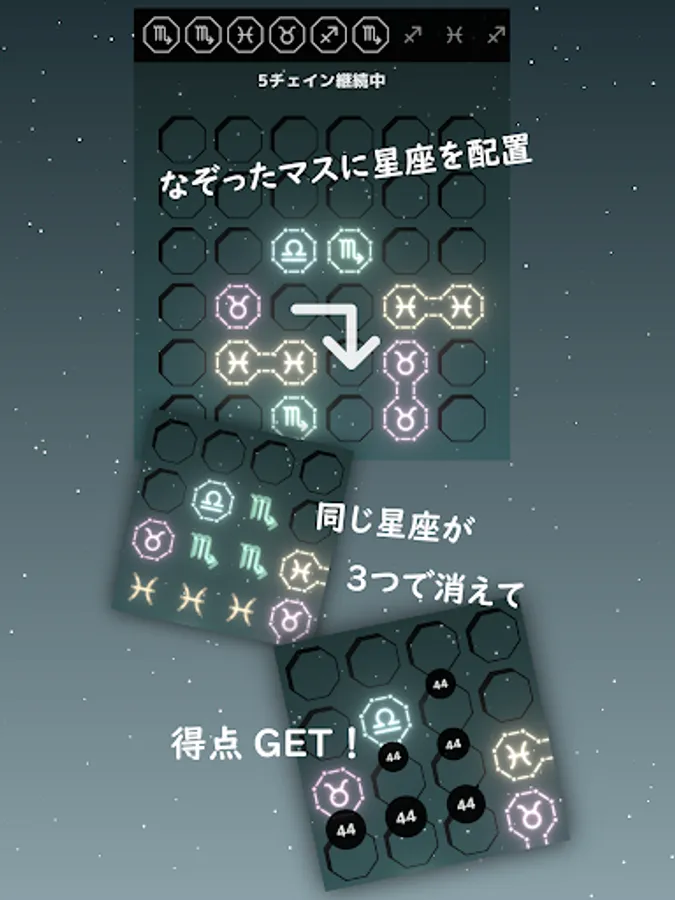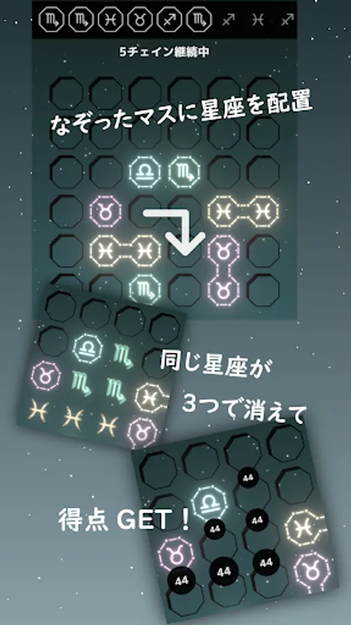 Join the same constellation and erase it to earn points!
